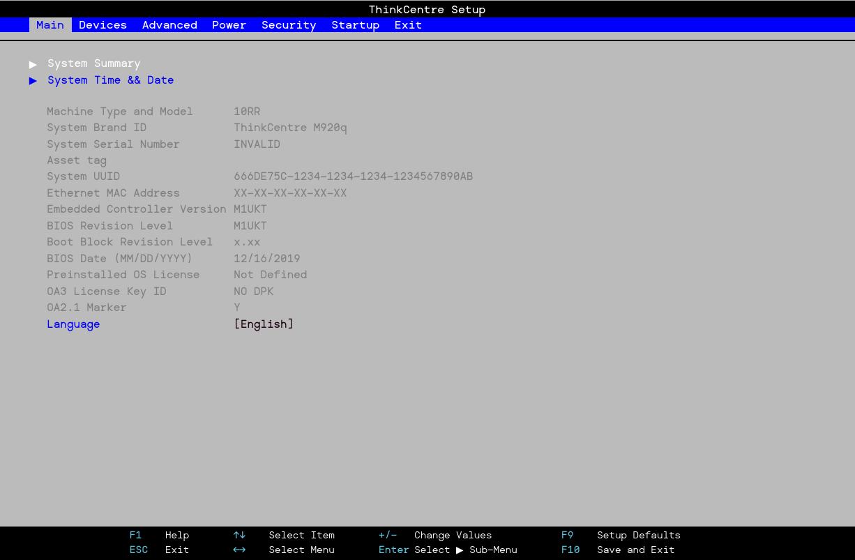 Postup s mačkáním klávesy opakujte, dokud se nedostanete do nastavení BIOSu (BIOS setup). Pokud se vám nepodařilo se dostat do BIOSu a už vidíte načítání Windows, můžete počítač rovnou vypnout a zkusit to znovu.Hlavní stránka nastavení BIOS počítače Lenovo ThinkCentre